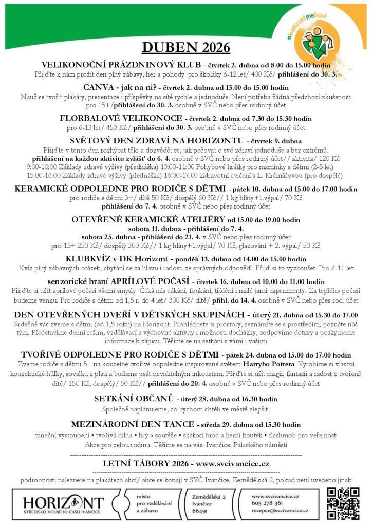 Přinášíme nabídku akcí a příměstských táborů pobytových zájezdů, které nabízí SVČ Ivančice.